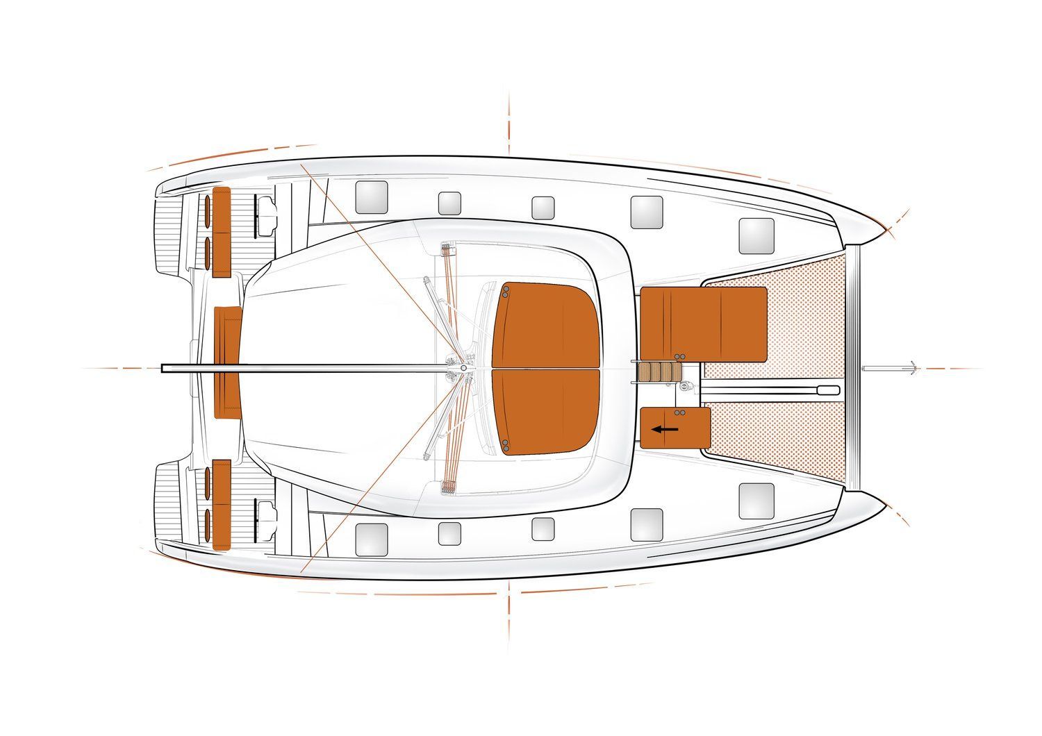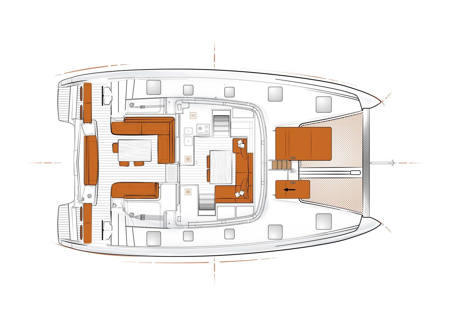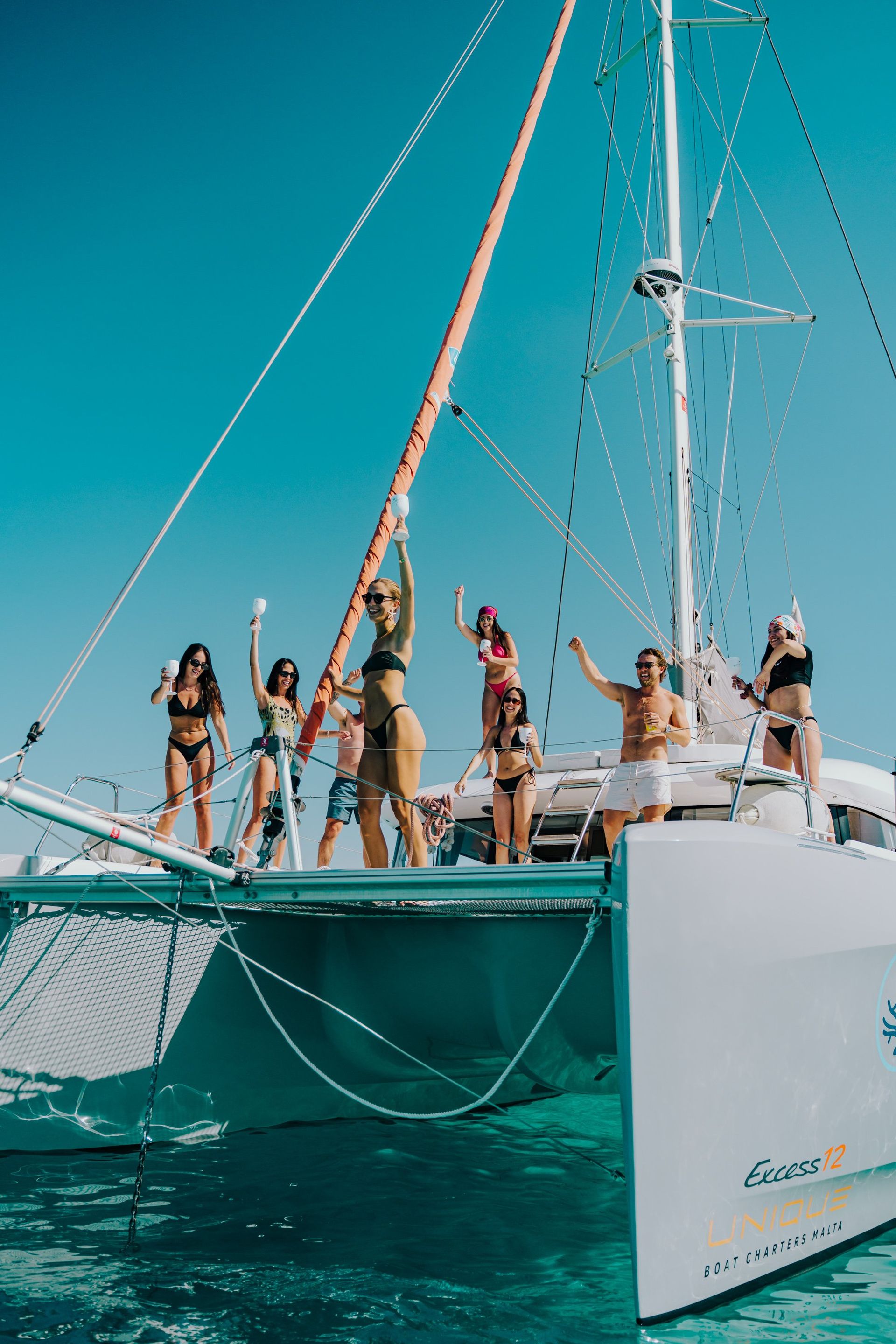 The Excess 12, a model crafted in 2022, boasts impressive specifications that make it a standout in the realm of sailing vessels. With an overall length of 11.89 meters, a beam measuring 6.82 meters, and a draught of 1.30 meters, the Excess 12 offers a spacious and stable platform for maritime enthusiasts. Its propulsion is driven by 2 x 45 HP engines, ensuring efficient and powerful navigation. Accommodating comfort, the yacht features three guest cabins, each equipped with a double berth, and a dedicated crew cabin. The vessel also houses two electric toilets and two showers, meeting the needs of both luxury and practicality. With a water capacity of 800 liters and a fuel capacity of 2x200 liters, the Excess 12 is well-prepared for extended journeys. Entertainment is provided through a built-in sound system, and the kitchen is equipped to meet culinary needs. The Catamaran boasts a delightful combination of luxury and comfort, making every sailing experience truly enjoyable. At the front, a generously sized trampoline adorned with cushions offers a relaxing spot to soak in the surroundings. Meanwhile, the vessel provides flexibility with its comfortable seating at the back, perfect for those who prefer the open air. For those seeking an indoor retreat, a cozy sofa awaits, ensuring that passengers can unwind in style. With attention to both outdoor and indoor comfort, the Excess Catamaran promises a luxurious and pleasurable journey on the water.